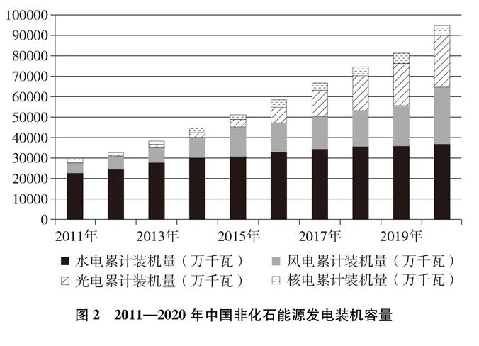 非化石能源快速發展。中國把非化石能源放在能源發展優先位置,大力開發利用非化石能源,推進能源綠色低碳轉型。初步核算,2020年,中國非化石能源占能源消費總量比重提高到15.9%,比2005年大幅提升了8.5個百分點;中國非化石能源發電裝機總規模達到9.8億千瓦,占總裝機的比重達到44.7%,其中,風電、光伏、水電、生物質發電、核電裝機容量分別達到2.8億千瓦、2.5億千瓦、3.7億千瓦、2952萬千瓦、4989萬千瓦,光伏和風電裝機容量較2005年分別增加了3000多倍和200多倍。非化石能源發電量達到2.6萬億千瓦時,占全社會用電量的比重達到三分之一以上。
